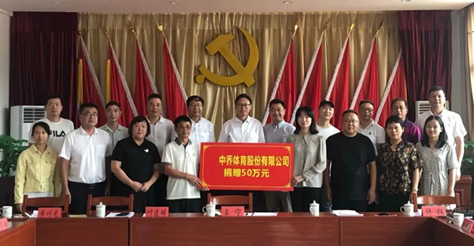 7月,为支援河南抗汛救灾工作,中乔体育通过河南青基会向新乡、鹤壁两地捐赠价值2000万元的服装和鞋子,发放给无家可归的受灾群众及一线工作人员与志愿者;捐赠1000万元现金用于资助河南受灾地区青少年教育灾后重建项目。